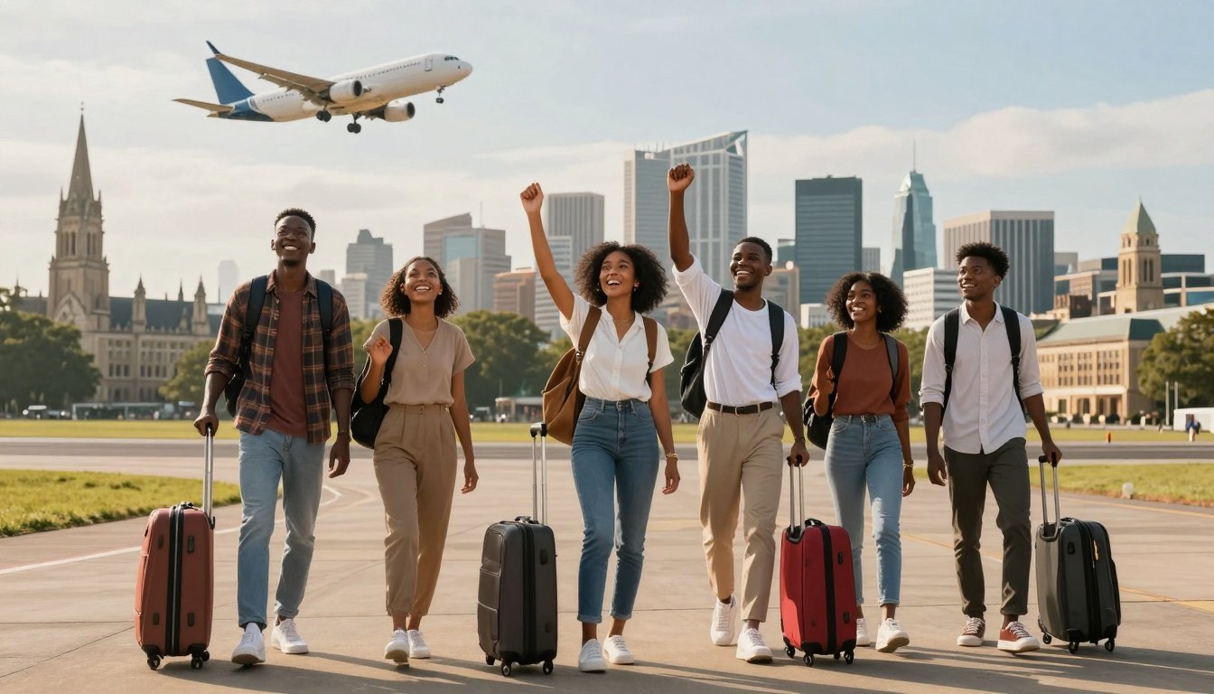Image suggestion: Nigerian student graduating abroad with family cheering.