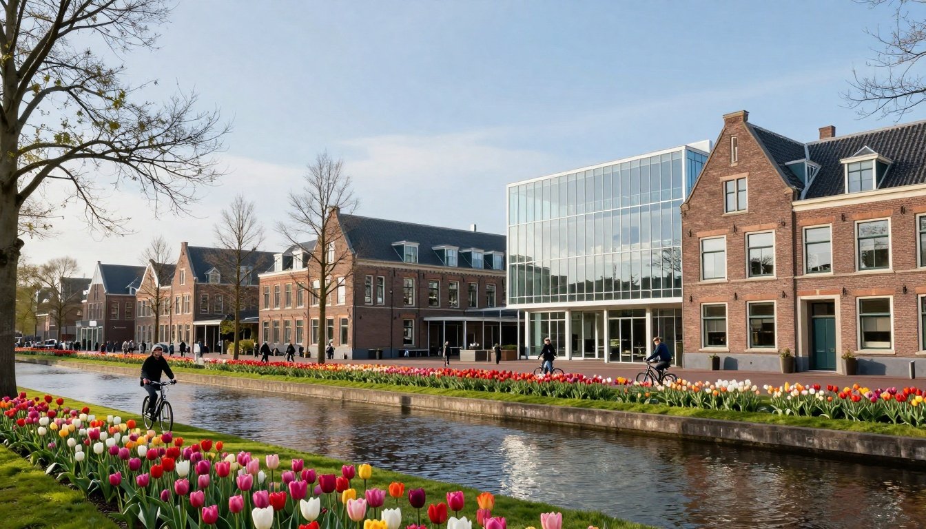Multicultural classes build global networks. Bike everywhere; it’s safe and green. Many grads land jobs at firms like Philips or Shell.