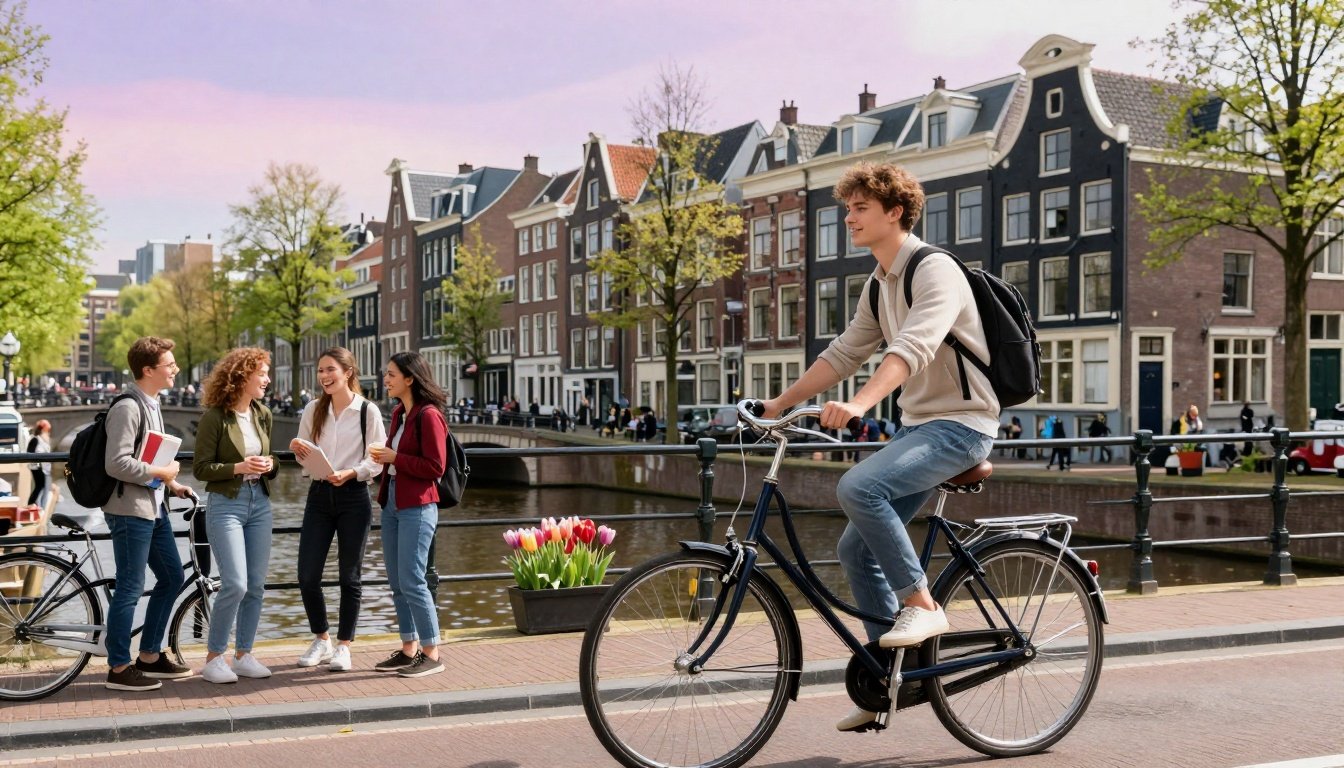 Amsterdam blends brains, bikes, and belonging. World degrees, €1,550 living, €5,000 scholarships, €14 jobs.
